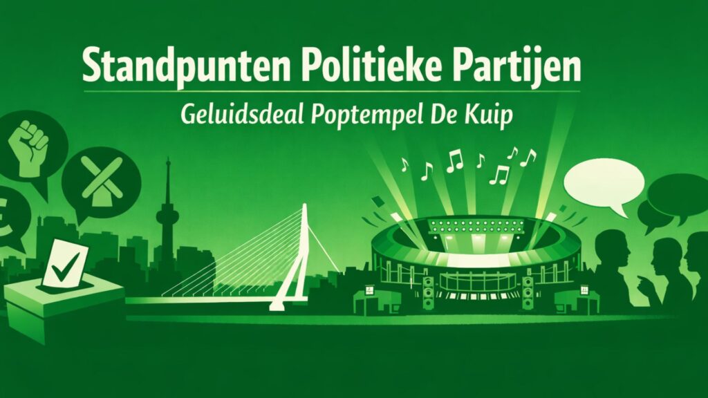 In aanloop naar de gemeenteraadsverkiezingen heeft Poptempel De Kuip de Rotterdamse politieke partijen bevraagd over hun standpunt ten aanzien van de geluidsdeal en de toekomst van De Kuip als concert locatie.